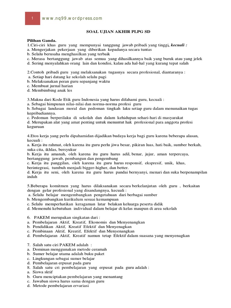 Bacalah setiap soal dengan teliti. Silahkan unduh filenya secara gratis pada tautan link dibawah ini artikel terkait: Berikut adalah contoh soal uji akhir plpg sd, sebagai contoh soal uji akhir plpg 2012 contoh soal ptk 1 contoh soal ptk 2 contoh soal studi kasus contoh soal model,media & evaluasi pembelajaran contoh soal pengembangan profesionalisme guru. Untuk memutar film yang termuat dalam cd. Demikian informasi mengenai artikel yang.