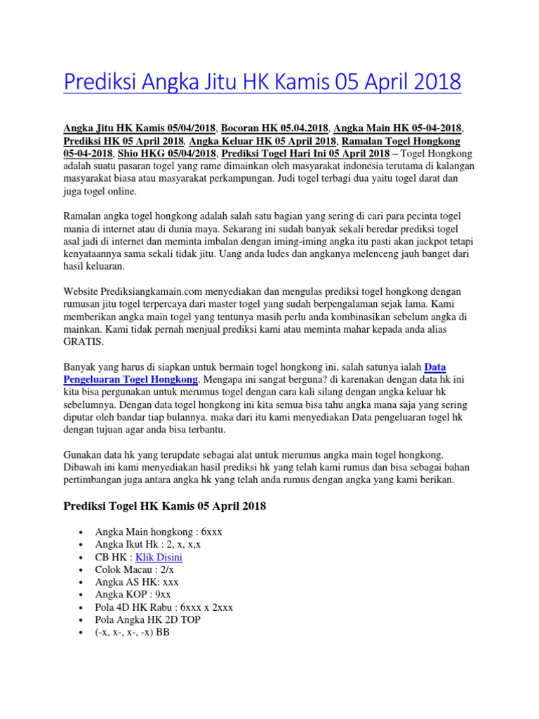 Dan jangan main lagi di bo tersebut Aug 18, 2021 · prediksi hk kami dengan rumus sumber data hk hongkongpool. Semua data pengeluaran hk hari ini valid, berasal dari hongkong pools. May 18, 2021 · angka jitu 2d hk malam ini,angka wajib hadir hk jumat, angka pasti wajib masuk hongkong senin, angka keluar hk jitu minggu, top 2d hongkong kamis, angka ikut tembus hk rabu, master hk sabtu, angka terkuat hk selasa angka pasti keluar untuk hari ini adalah ? Racikan pola serang top 3d angka main jitu pasti keluar 1 digit tepat di ekor hk minggu malam ini, jadi anda ingin mencari sumber prediksi di angka wajib 2d untuk bahan pertimbangan, kami akan sediakan racikan menurut rumus angka wajib hk malam ini atau ramalan lainnya yang pastinya bakalan jp di malam ini sumber kami terpercaya.